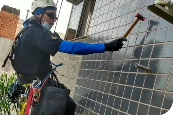 Identificar as patologias da fachada como, argamassa não aderente, descolamento de fachada, cerâmicas soltas, ausência de rejunte, entre outras.